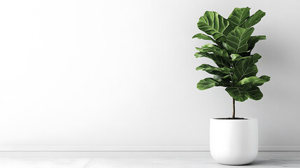 Large house rubber plant in modern white pot fiddle leaf fig tree isolated on white background