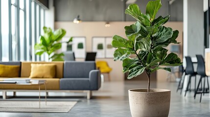 Fiddle Leaf Fig Tree front top view indoor set png alpha channel