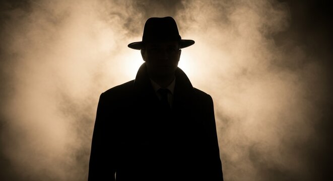 Silhouette of man in hat mystery and intrigue dark figure