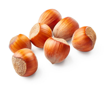 Hazelnuts isolated on white background
