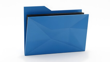 A stylized 3D blue file folder featuring an abstract, angular faceted design.