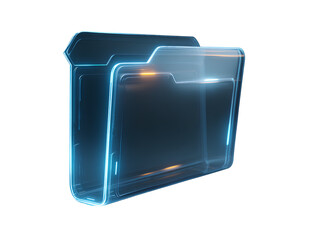 Transparent Glass Folder Icon with Light Refractions and Glow Effects, Angled Side View, Isolated on Transparent Background.png