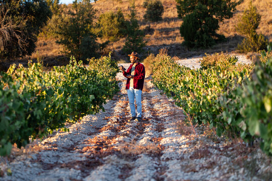 Inspecting rooftop worker holding plans on stair platform with data and chart overlay