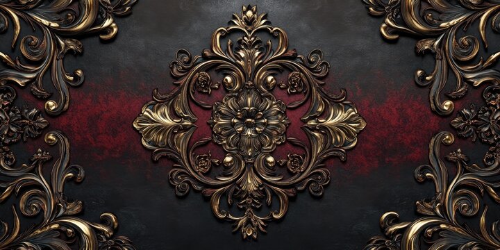 Flowing gold baroque scrollwork with acanthus leaves and embossed filigree ornament decorative panel