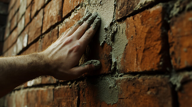 Mason applying finishing touches to a brick wall. Featuring masonry and construction