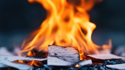 Closeup of a burning letter releasing ashes into the air in a dark dramatic fire scene with deep depth of field and intense fiery flames  Symbolic of finality closure