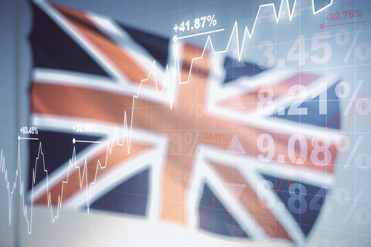 Finance And Data Analytics Concept With Uk Flag Background Images