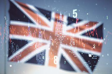 Finance and data analytics concept with uk flag background
