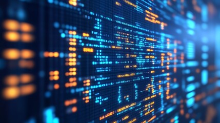 Data processing on digital grid background with code display