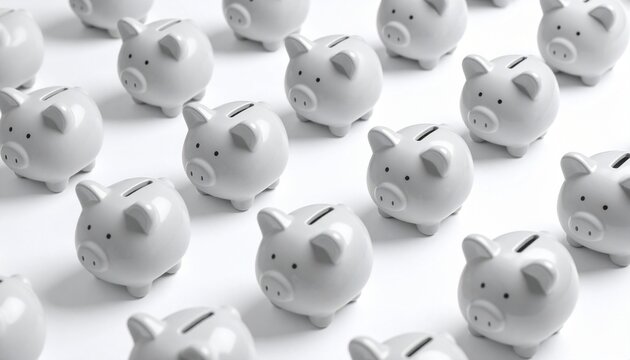 "Grid of white piggy banks—symbolizing collective savings, financial planning, and economic strategy."