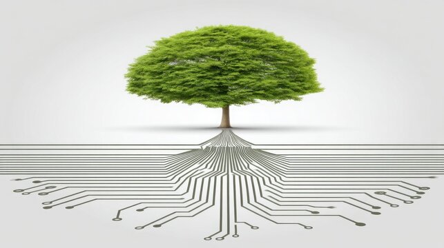 Green finance concept foliage overlaying stock market tickers and data grid visual texture