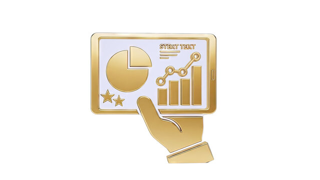 Gold 3D Icon of Hand Holding Tablet with Financial Charts