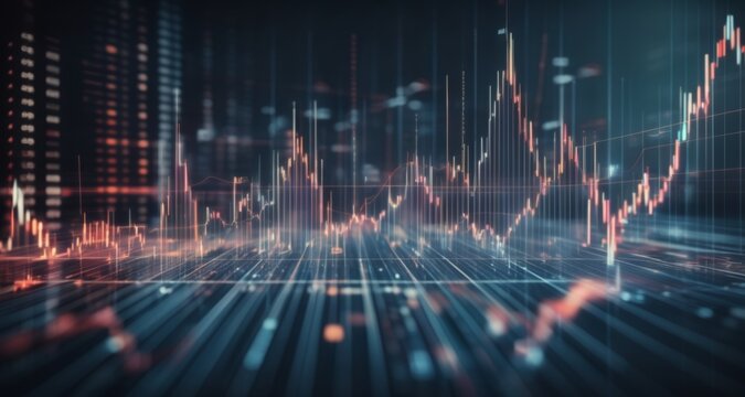 Digital financial analysis with futuristic data graphics