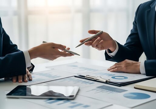 Financial Analysts Reviewing Data Charts and Graphs, Analyzing Market Trends for Investment Strategy, and Developing Business Solutions