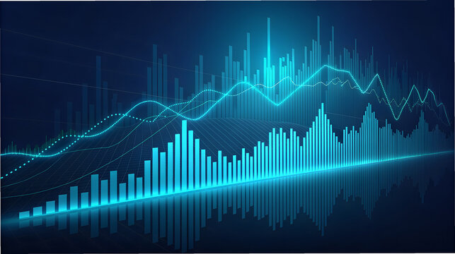 Futuristic blue digital financial data analysis and growth chart