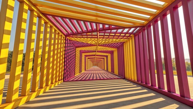 Abstract 3D visualization of brilliant yellow and magenta trading lines weaving, showcasing dynamic motion, vibrant light trails, and futuristic trading data lines
