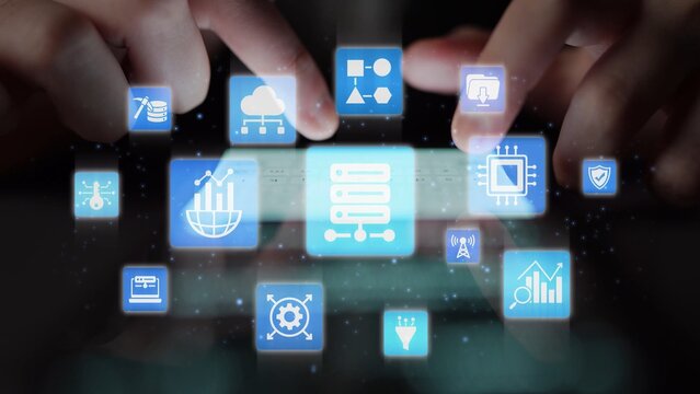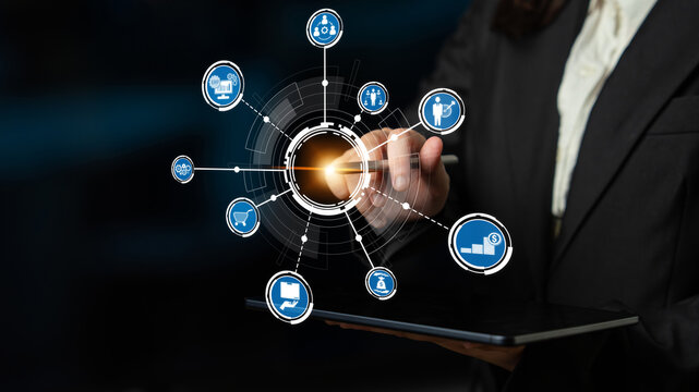 ERP icons show management, integration, and business process. ERP supports data management, ERP efficiency, and ERP organizational solutions. Gist