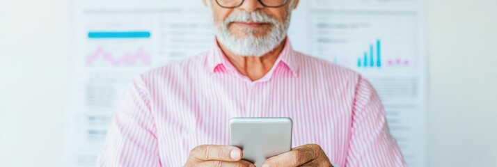 Businessman utilizing smartphone for financial data analysis