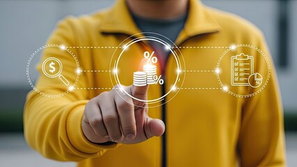 Businessman analyzing financial data with interactive icons