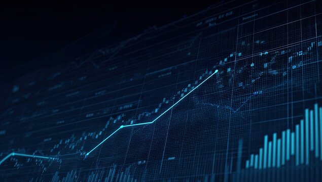 Financial Data Display With Dynamic Chart On Blue Background Images