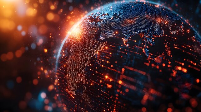 Glowing Holographic Globe with Arrows Representing Real Time Capital Movement Across Continents