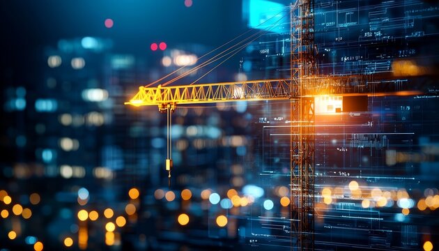 Data visualization showing investment analysis and financial strategy over a city skyline at dusk