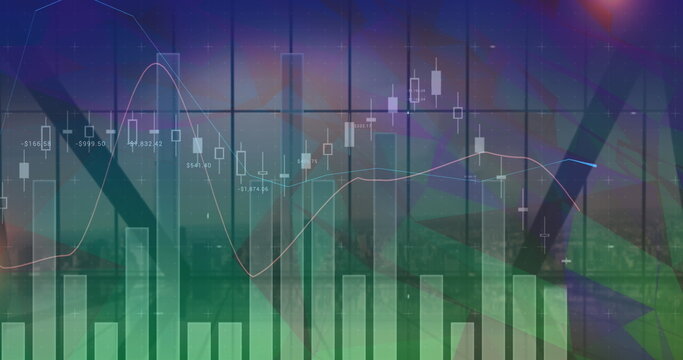 Image of financial data processing over crane and construction site global development business finance digital interface and data processing concept digitally generated image : Generative AI