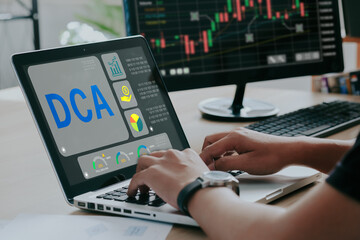 Multi exposure of financial theme drawing hologram and USA dollars bills and man hands. Business concept.