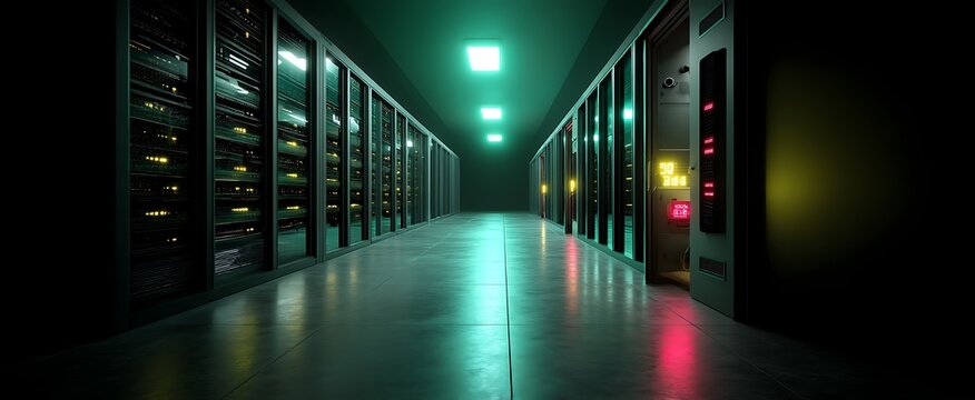 Futuristic Server Room Data Center HighTech Computing Environment with Digital Transformation.