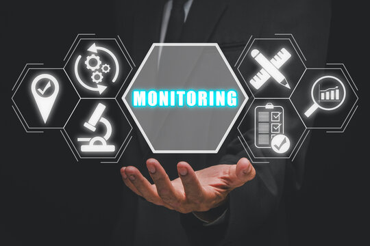 File Organization icon, Document Management concept for system or process used to capture, track and store electronic documents. Businessman shows document icon with moving cycle on virtual screen.