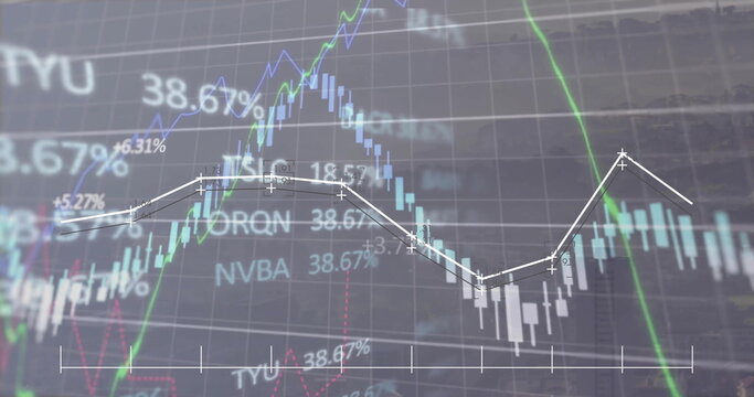 Financial data processing on digital interface with technology concept