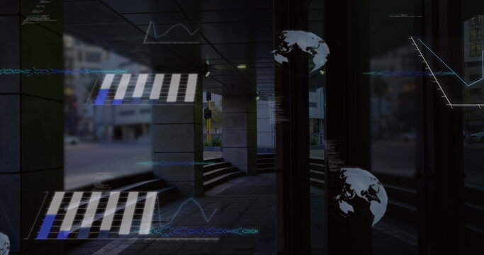 Digital financial data over globe with graphs