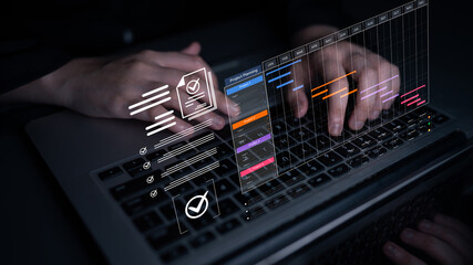 Concept of time management and productivity. Using tools like calendars and checklists to schedule tasks, set goals, and meet project deadlines for business efficiency. Fermion