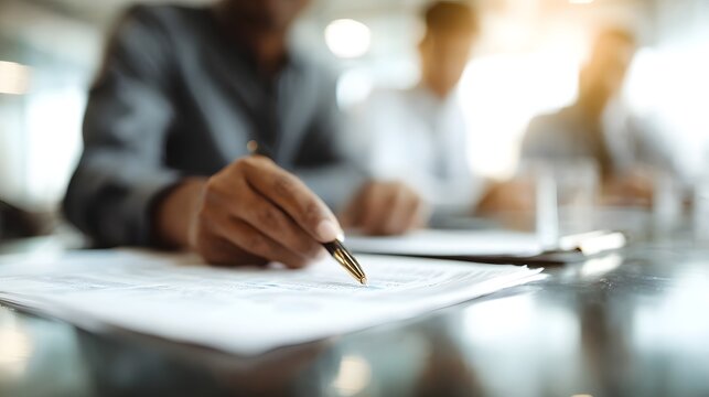 Financial audit team reviewing industrial balance sheet under compliant lighting