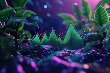 Chart illustrating green economy expansion set against dark, colorful neon backdrop with greenery