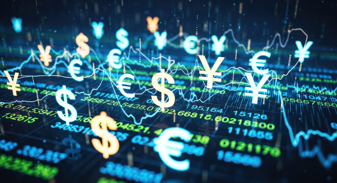 Global financial market trends displayed on a digital interface.  Complex data visualizations depict fluctuating investment figures overlayed on a world map
