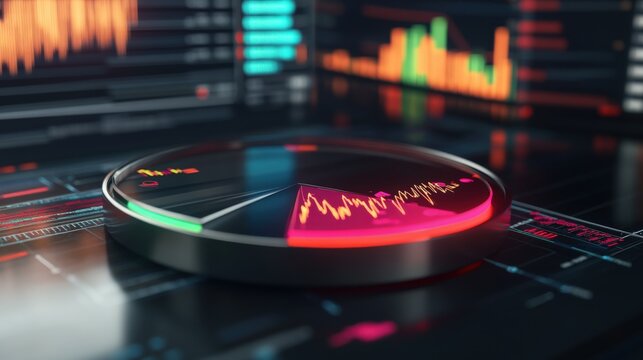 Colorful pie chart displaying financial data on a digital interface with graphs and statistics