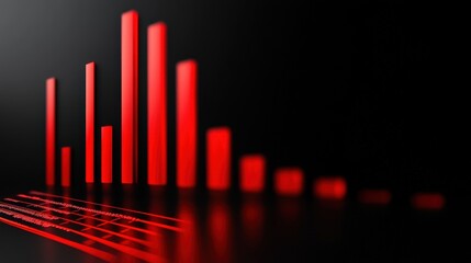 Red Graph Bars Rising on Black Background Representing Financial Growth and Success