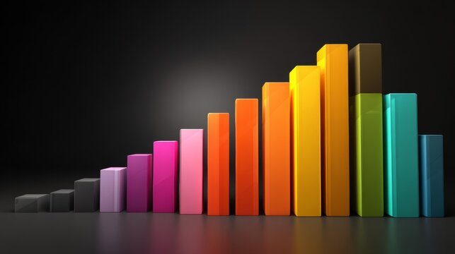 Colorful Bar Graph Displaying Growth with Neon Effect on Black Background