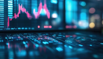 Dynamic financial market data displayed on a graph with blurred background showing modern business environment : Generative AI