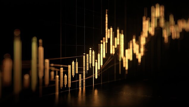 Dynamic financial chart with glowing candlestick bars showing market trends and data visualization