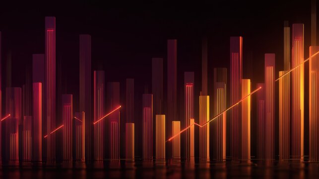 Glowing bar chart with upward arrow representing business growth and financial success on dark background