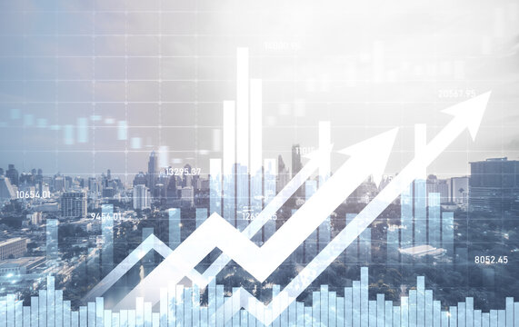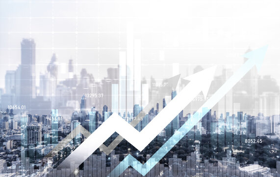Financial Graphs Overlapping Cityscape Background Images