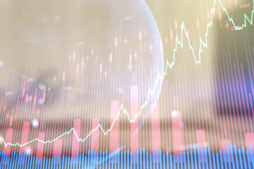Abstract creative financial graph on modern laptop background, financial and trading concept. Multiexposure