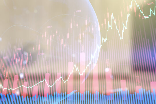 Colorful financial graphs on digital screen with globe