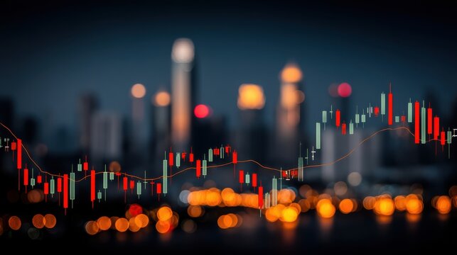 Modern city financial data visualization with candlestick bars