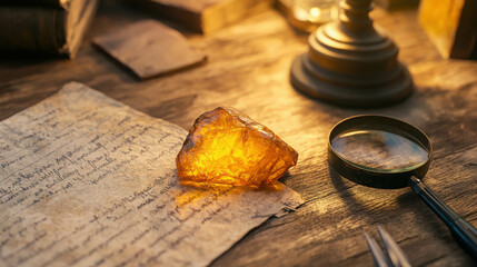 A photo concept for Audit theme; A detailed report is placed under a magnifying glass, symbolizing scrutiny