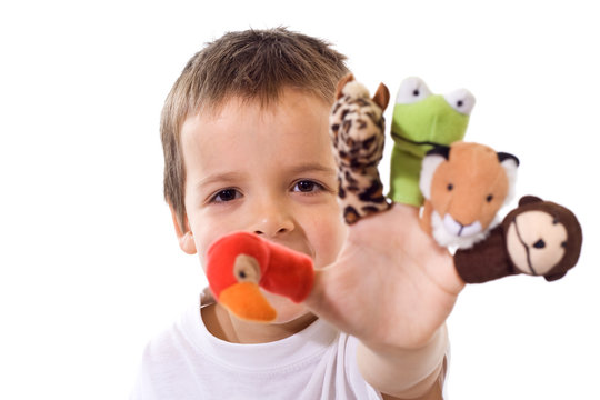 Boy with finger puppets
