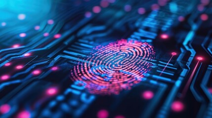 Future security technology. Fingerprint Security Concept. 3D Render of a circuit board.