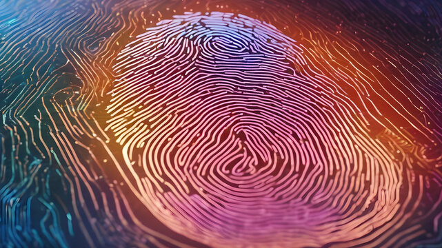 Biometric fingerprint scanning on futuristic digital interface